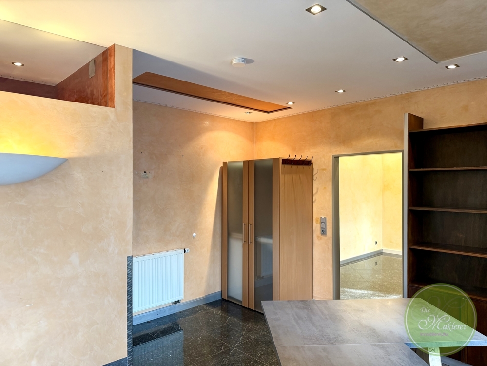 Gleich nach dem Eintreten haben Sie genügen Platz für eine Garderobe und den Empfang für Ihre Kunden. Alles ist großzügig und hat den typischen “praktischen Style”.